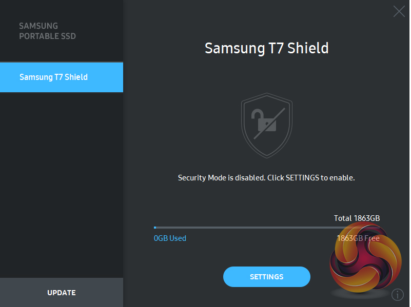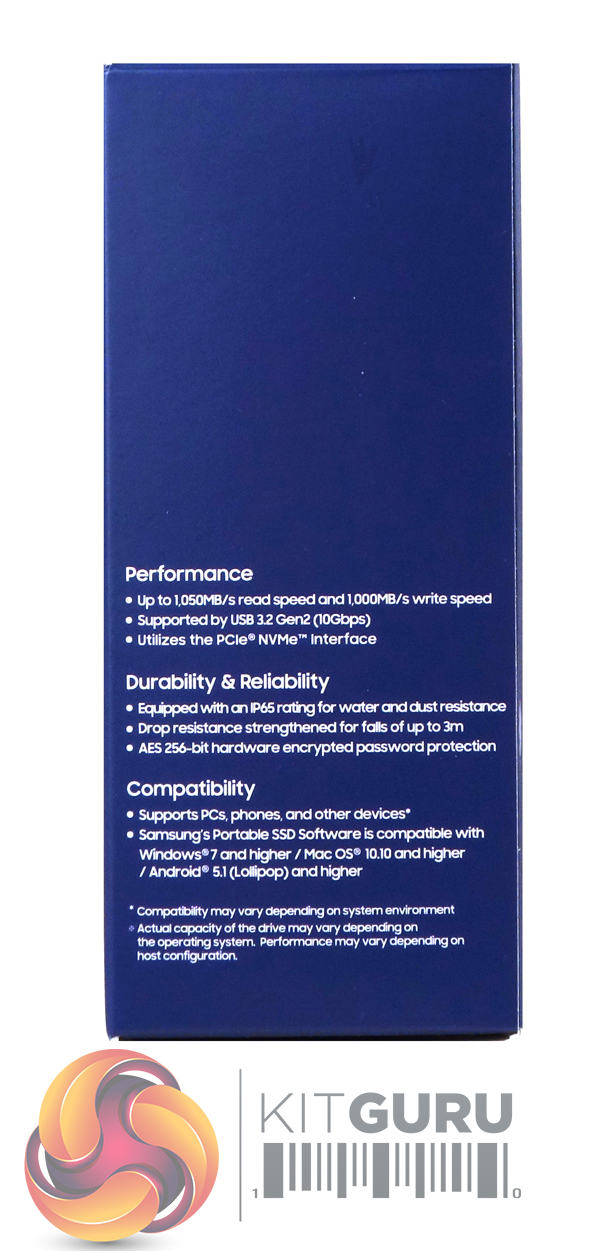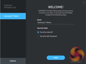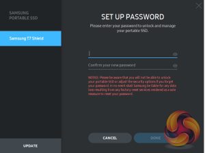 Samsung’s Portable SSD software comes pre-installed on the drive. It simply allows the enabling of encryption protection of the drive.The software is supported by Windows, MAC OS and Android devices.