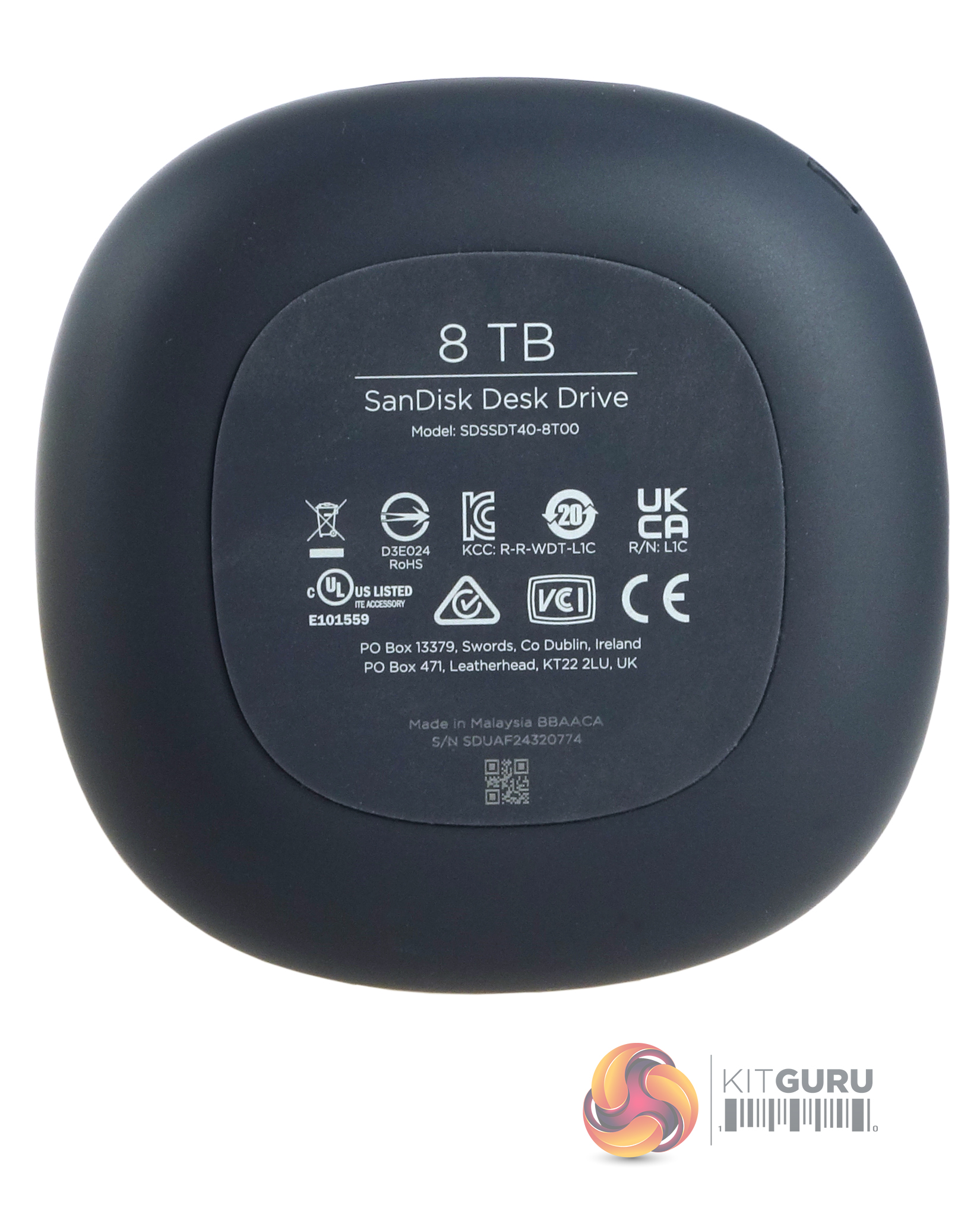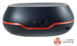 One end of the drive holds the USB-C (the interface is clocked at USB 3.2 Gen2 x 1, 10Gbps) and power adaptor ports and there is also a Kensington Security Slot for added protection when sitting on a desk.