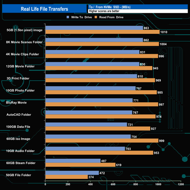 Whereas there were only two instances when the drive topped 1GB/s (reading the 5GB image and 8K movie scenes folder) when in USB 3.2 Gen 2 mode.