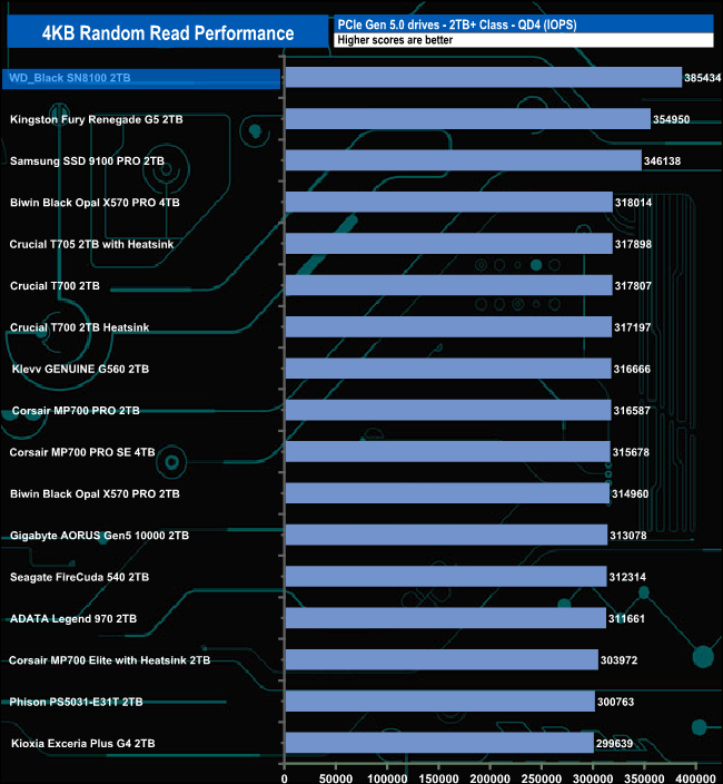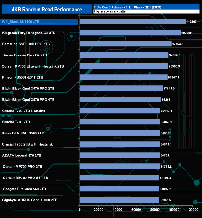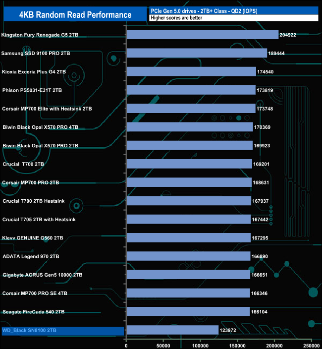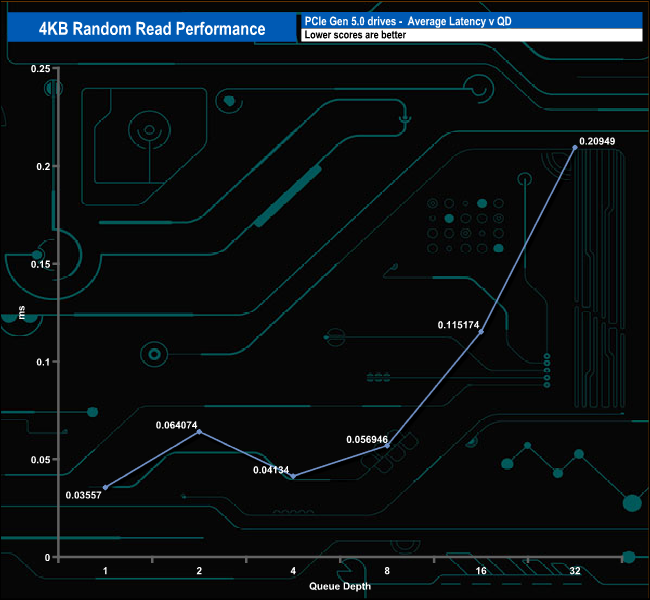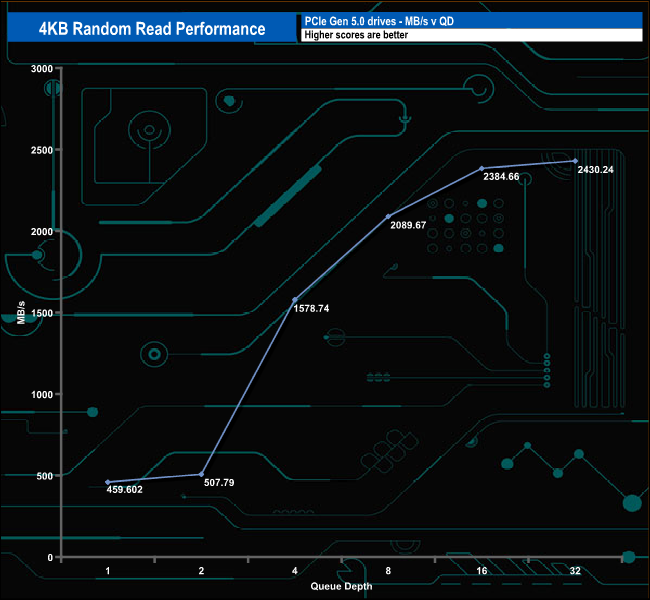 We used CrystalDiskMark 8‘s custom settings to test the 4K random read performance of the drive through a range of queue depths. The setup for the tests is listed below.