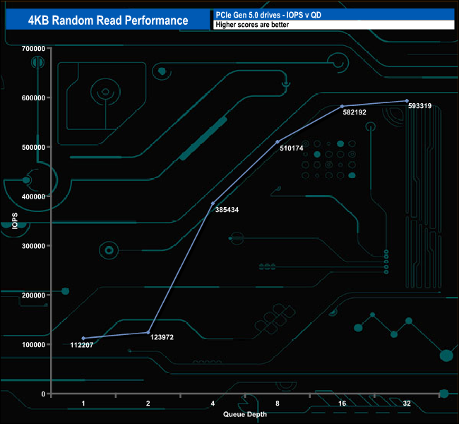 At QD1, the test result of 112,207 IOPS sees the drive as the fastest we've seen to date. In contrast, at QD2 it's the slowest we've seen. But the drive recovers well as it tops the table again by QD4 and at the end of the test run at QD32.