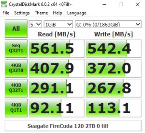 CrystalDiskMark is a useful benchmark to measure theoretical performance levels of hard drives and SSD’s.