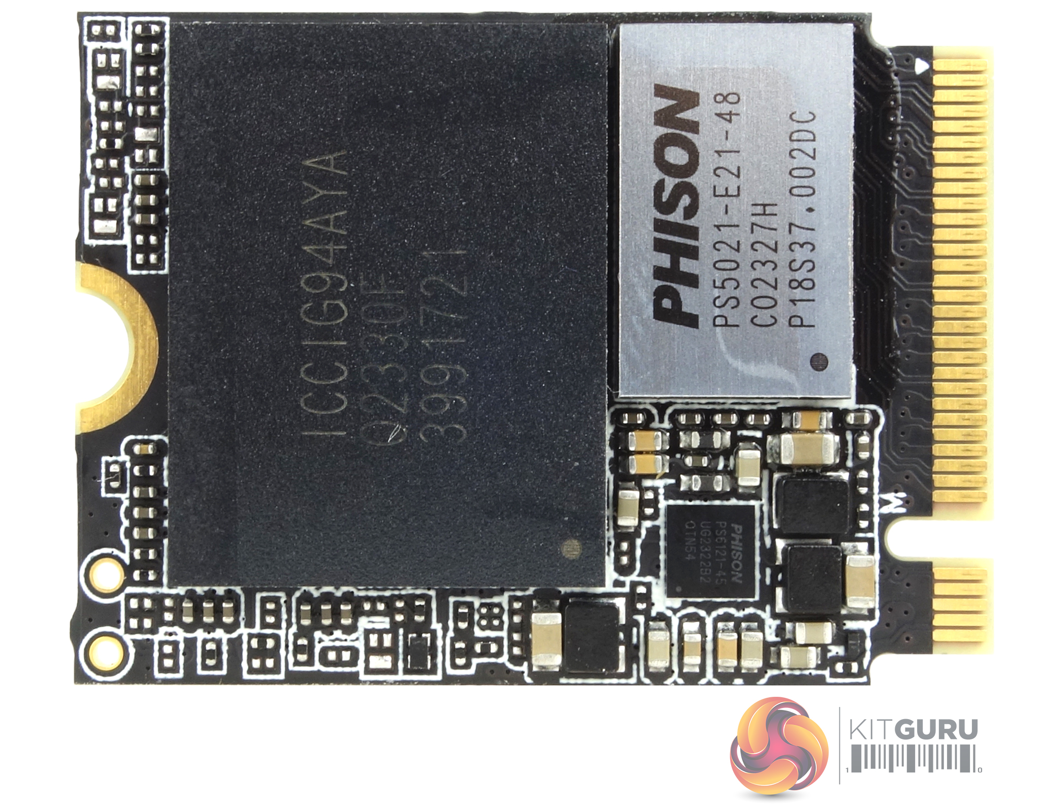 There are only two major components on the PCB, the small (it only measures 7.5mm x 12mm) Phison PS5021-E21T controller and one 1TB package of Micron B47R FortisFlash 176-layer 3D TLC NAND.