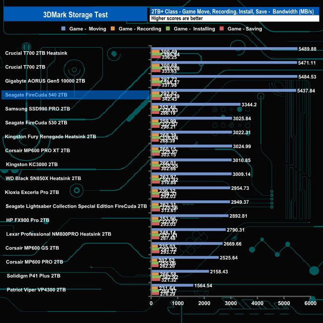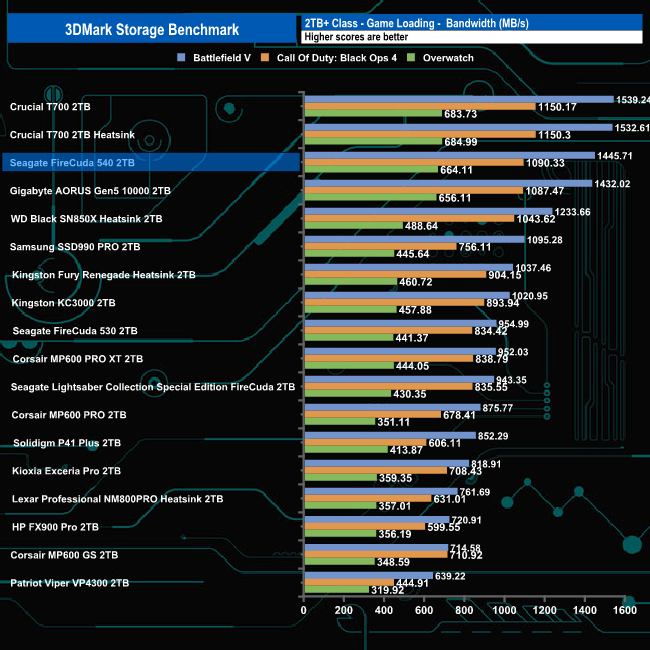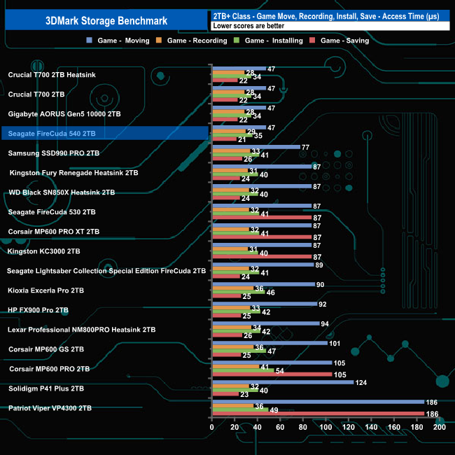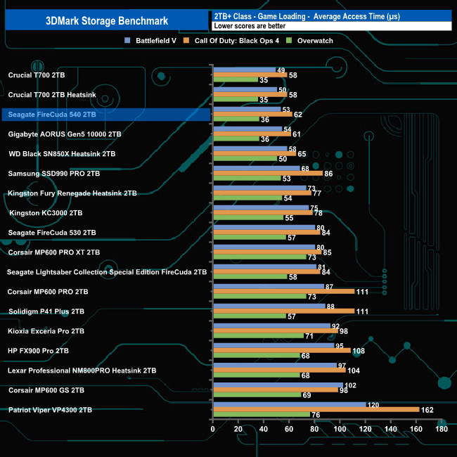 In 3DMark’s Storage Test, the FireCuda 540 had an average game loading bandwidth figure for the three games of 1,066MB/s with an average access time of 50µs.
