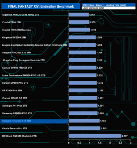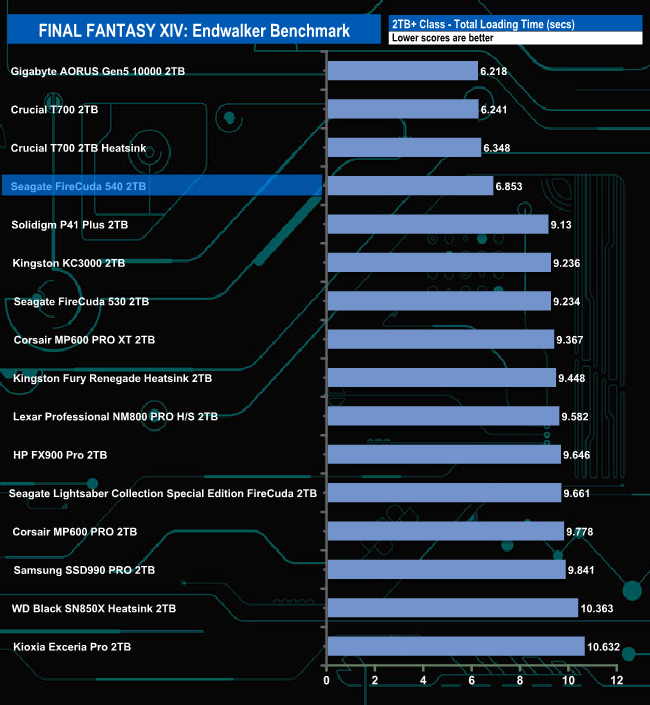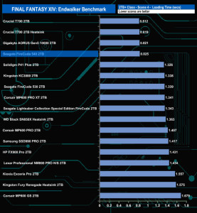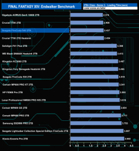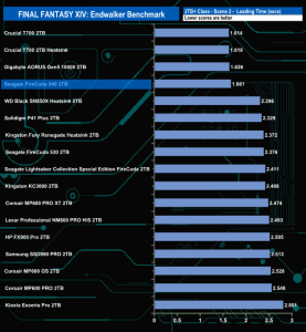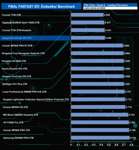 The Seagate FireCuda 540 does well enough in the Final Fantasy XIV Endwalker Official Benchmark. It doesn't top any of the results charts and indeed, oddly, it sits near the bottom of the Scene 1 load time chart but sits in fourth place in the overall load time chart.