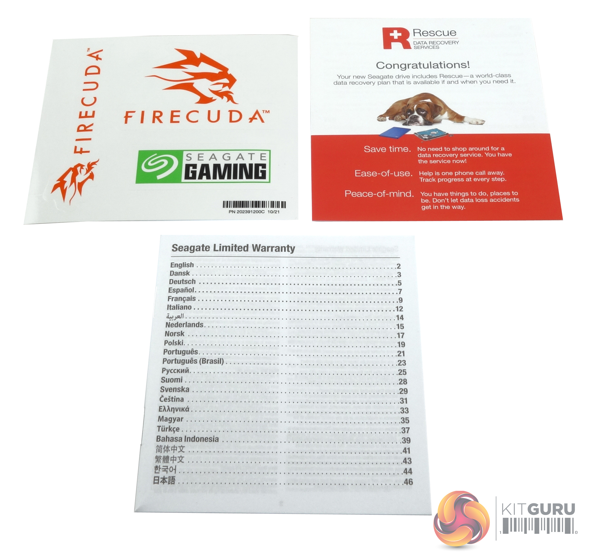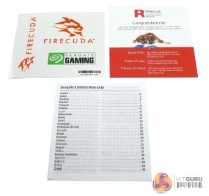 Bundled with the drive are a set of FireCuda branded stickers, data recovery service information and warranty info booklets.