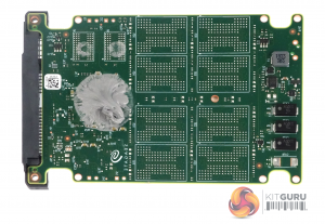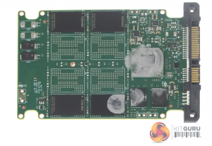First thing you notice when you get inside the drive is that, unusually, Seagate has opted for thermal paste to keep the controller cool and not the more common thermal pads. The 240GB IronWolf has a lot of empty real estate as it uses a full sized PCB to house just the Seagate in-house controller (labelled 50002176), four Toshiba 3D TLC BiCS3 (TH58TFG9V23BA4C) NAND packages and two Micron DDR3-1866 (MT41K128M8DA-107:J) cache chips. The drive also has power-loss data protection via on-board capacitors.