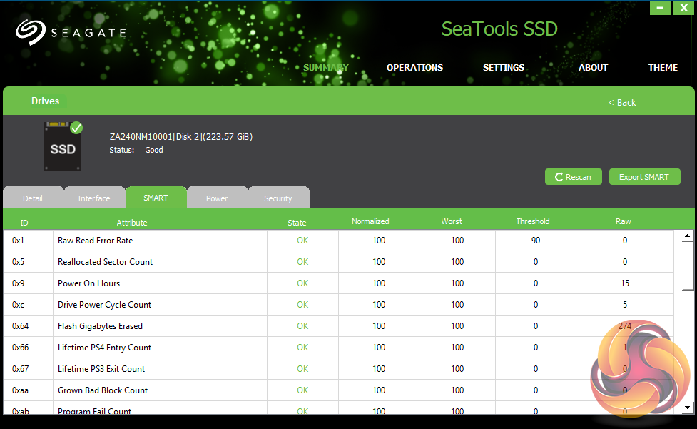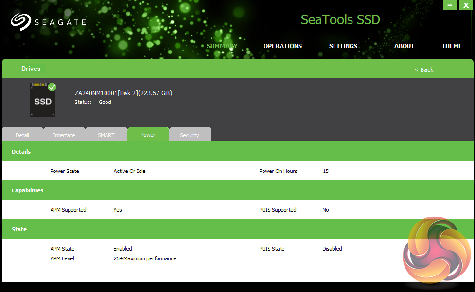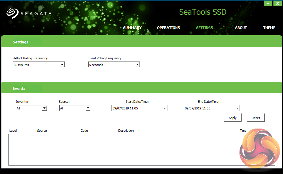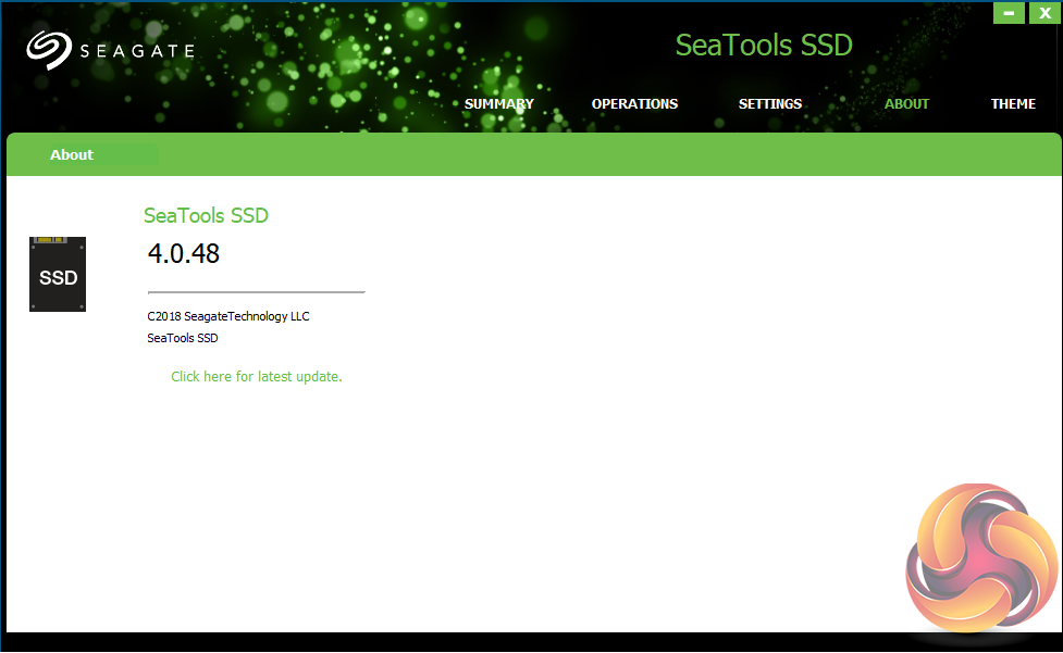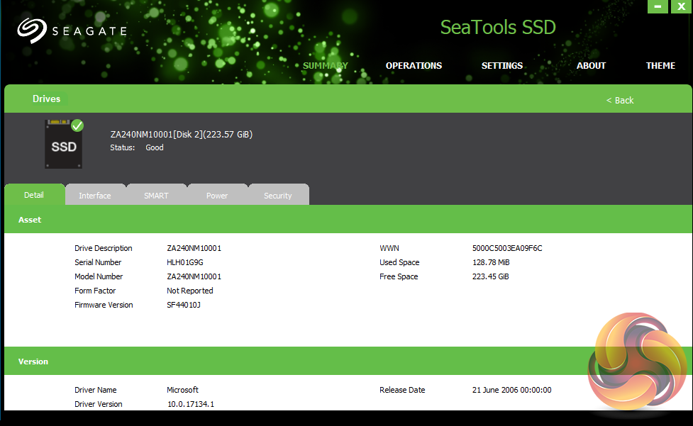 Seagate's SSD utility is SeaTools SSD. SeaTools SSD is a pretty comprehensive management tool that displays drive information including model, capacity, disk usage, temperature and remaining life. It also displays information about the SATA interface. It has an event log that can be exported and with it you can perform firmware updates. Firmware updates are done via the Operations page. Within this page you can also run drive diagnostics, and, if the drive supports it, switch between performance optimised and capacity optimised modes. There's also a link to Seagate's disc cloning software – DiscWizard.