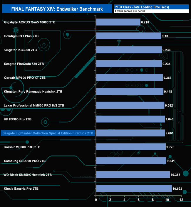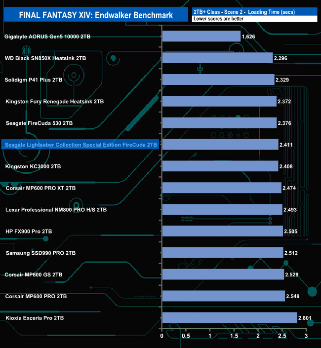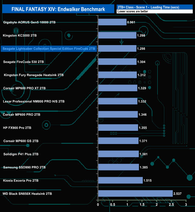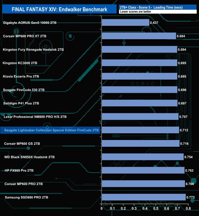Overall the Seagate Lightsaber Collection Special Edition FireCuda is slightly slower than the standard FireCuda 530 that it uses at its core. It trails the standard drive in all the scene load times except for Scene 1 where it's faster.
