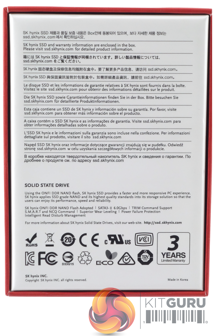 The SC311 comes in a good quality box with a large image of the drive on the front. The rear of the box has an expansive multilingual section detailing that the warranty information is in the box.