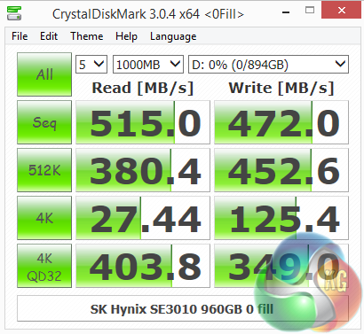 Crystalmark is a useful benchmark to measure theoretical performance levels of hard drives and SSD’s. We are using V3.0.3.