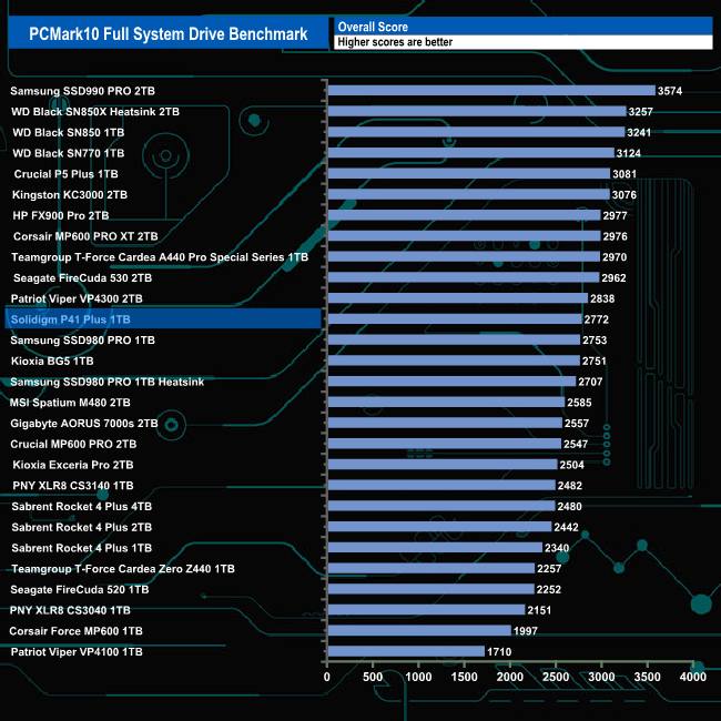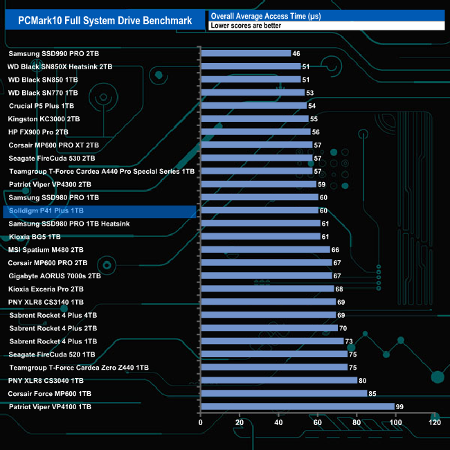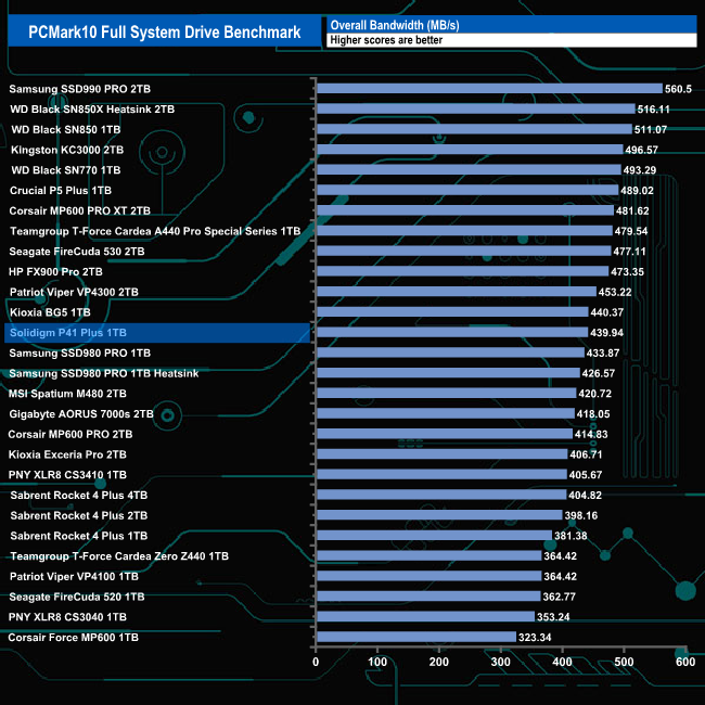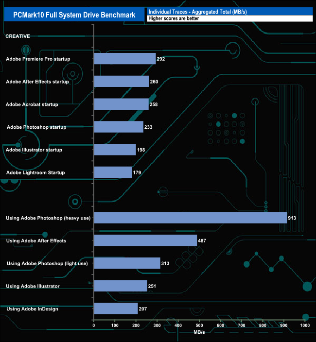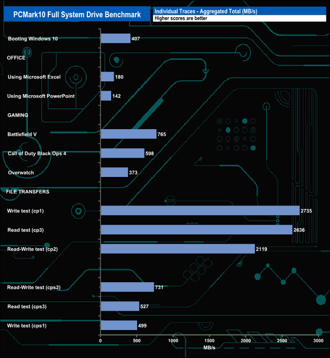 The PCMark 10 Full System Drive Benchmark uses a wide-ranging set of real-world traces from popular applications and common tasks to fully test the performance of the fastest modern drives. The benchmark is designed to measure the performance of fast system drives using the SATA bus at the low end and devices connected via PCI Express at the high end.