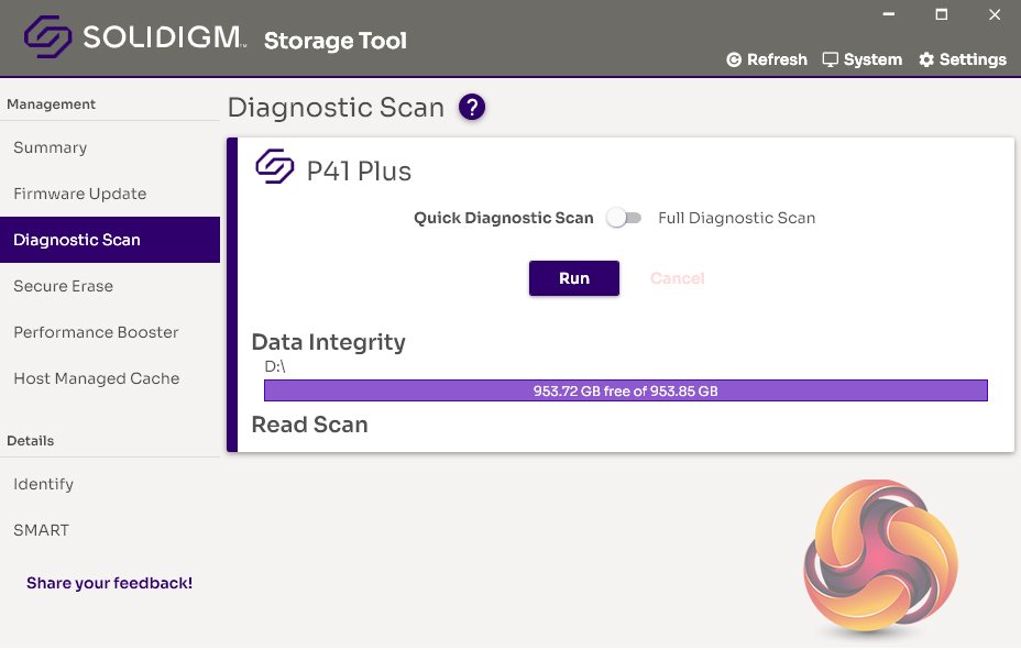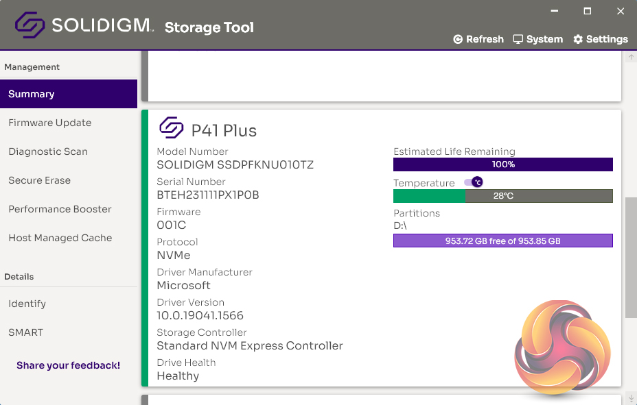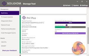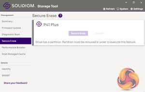 Solidigm's software utility goes by the name of the Synergy Storage Tool. It doesn't have the flashy GUI of some of its competitors but most of what you need is there including; drive information, drive health, diagnostic scans, firmware updates and secure erase.