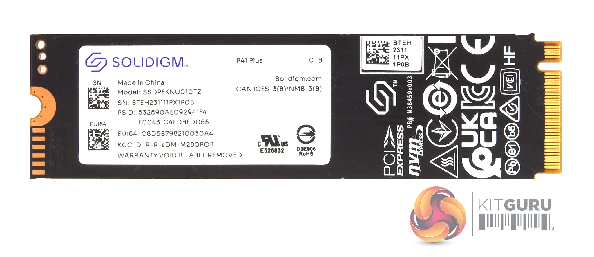 The 1TB Solidigm P41 Plus is a single-sided M.2 2280 design which doesn't have any form of heatsink installed.