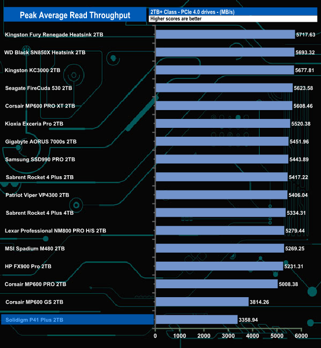 That peak read result of 3,358MB/s puts the drive in last place on our results chart.