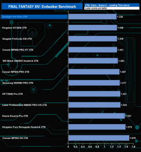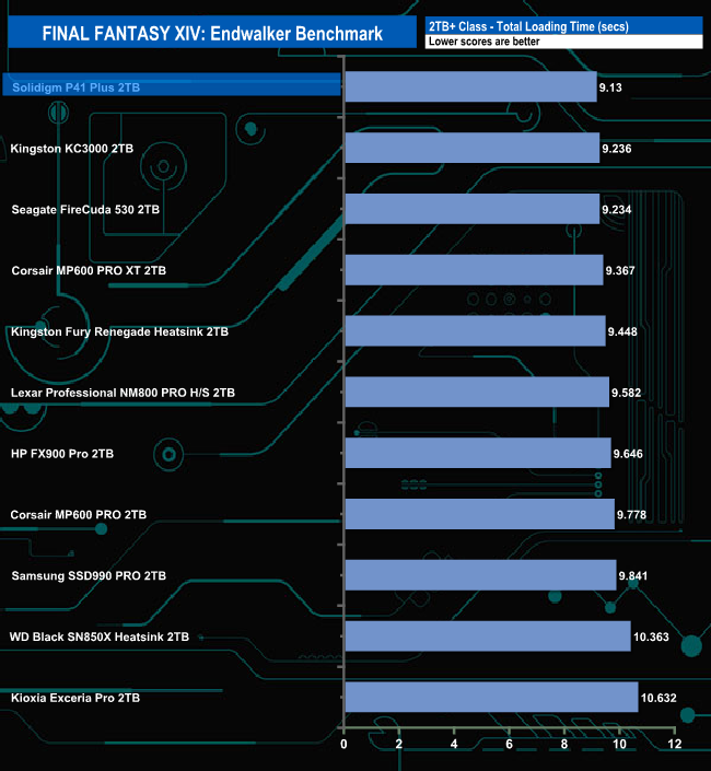 Solidigm's 2TB P41 Plus does very in the Final Fantasy XIV Endwalker Official Benchmark topping the chart with the fastest total load time we've seen to date. It also tops two of the other individual scene load timing charts as well.