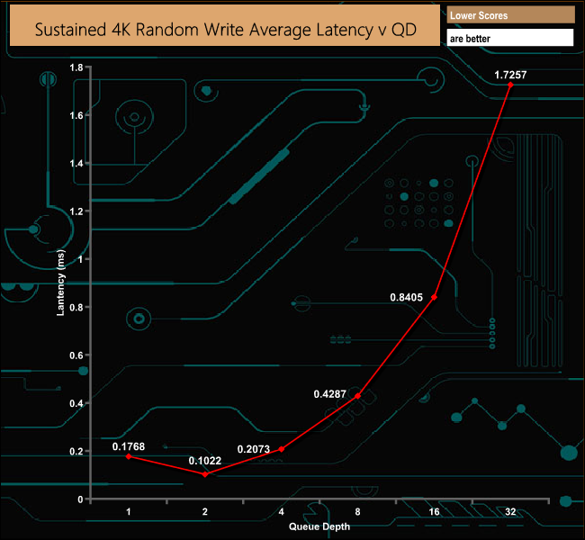 The tested 4K performance of the drive might be disappointing but apart from the QD1 result, the drive is very consistent.