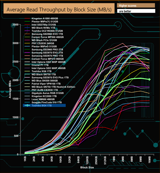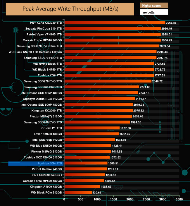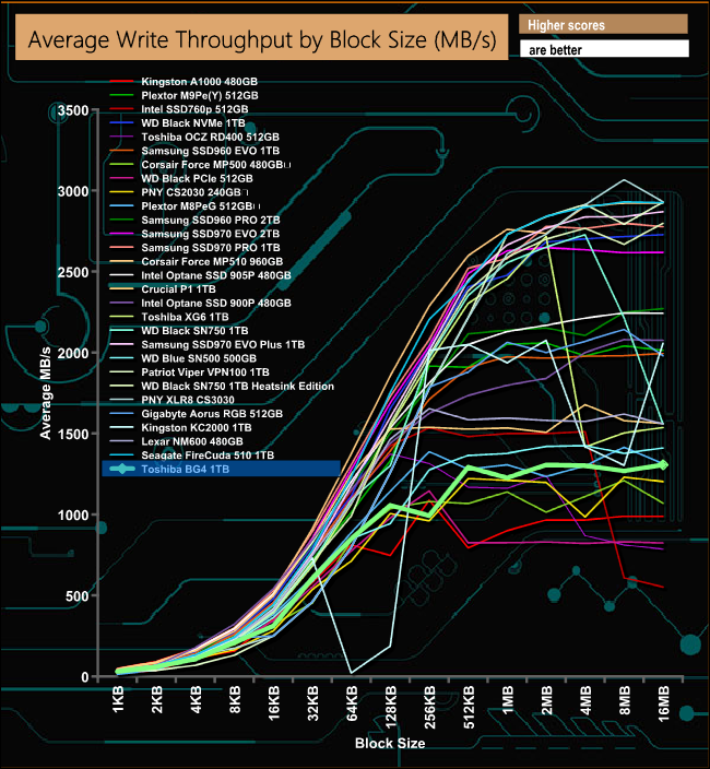 When it comes to write throughput, the BG4 is light years behind Toshiba's XG6.