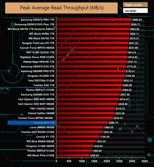 The BG4 read figure of 2,050.14MB/s is a fair bit off the pace compared to the 2,599MB/s of the previous Toshiba OEM drive we looked at, the XG6.