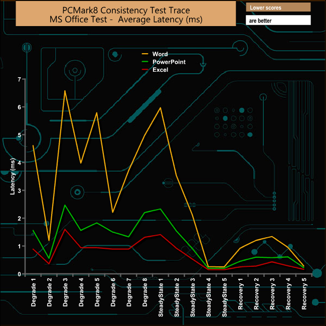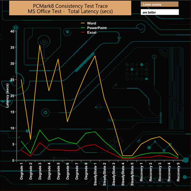PCMark 8’s Consistency test provides a huge amount of performance data, so here we’ve looked a little closer at how the BG4 performs in each of the benchmarks test suites.