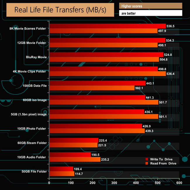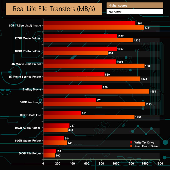 Transferring the files to and from another NVMe drive shows just how quick the BG4 is at handling file transfers especially when it comes to reading the data.