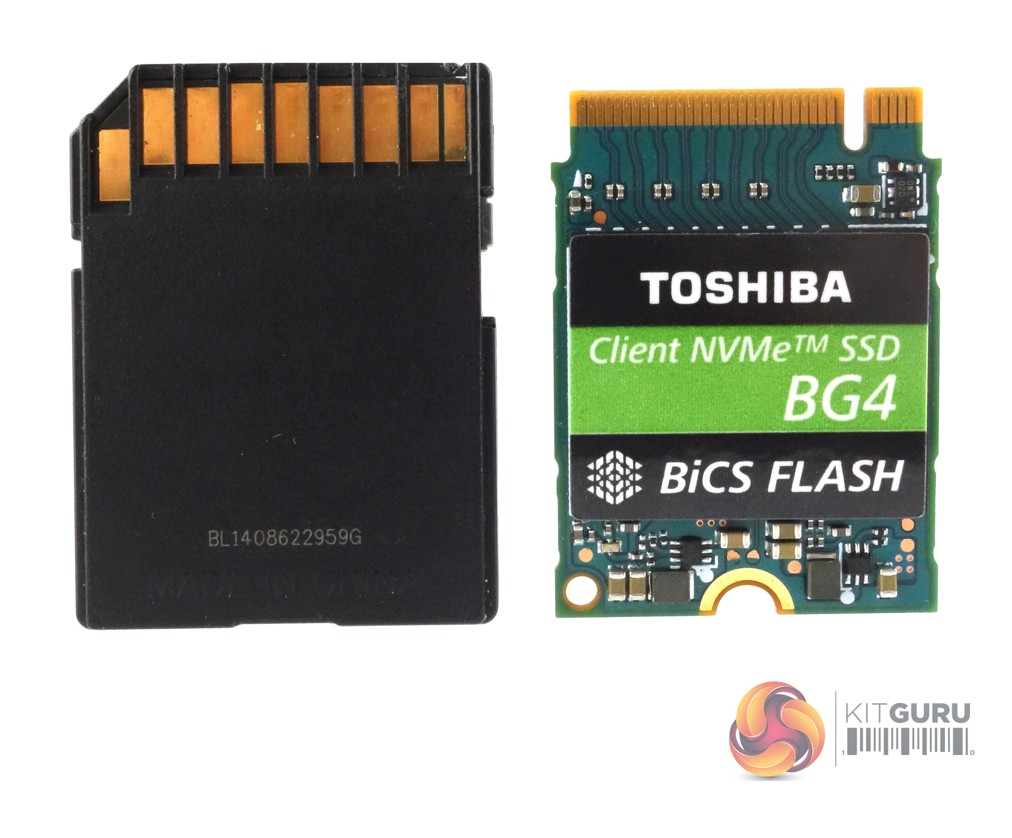 The 1TB module version of the BG4, coded KBG40ZNS, is built on a M.2 2230 format measuring just 2.38 x 22 x 30mm. A DRAM-less design, the drive has the controller and NAND combined into a single package.