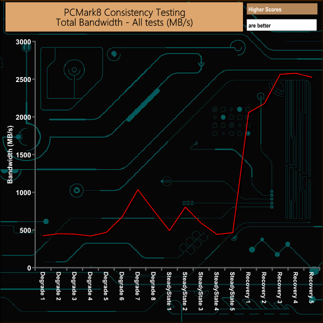 PCMark's Consistency test really hammered the RC100 drive throughout the Degradation and SteadyState phases, but to the drive's credit it recovered from the ordeal very well indeed.