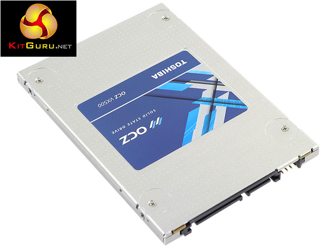 The VX500 range is made up of 128GB, 256GB, 512GB and 1TB capacities. Under the skin, the controller and the 15nm 512Gbit MLC NAND are all Toshiba in-house designs. Incidentally, while the 512GB drive and lower capacities do not have any separate cache memory chip(s), the 1TB drive does make use of a single cache chip.