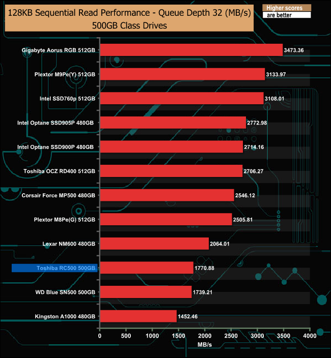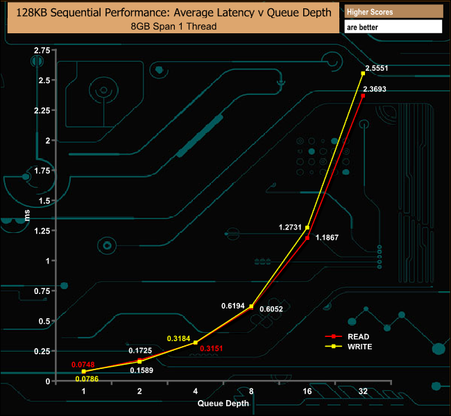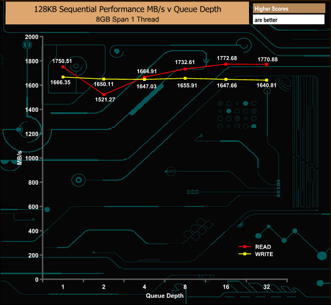 128KB Sequential Read Performance v QD comparison