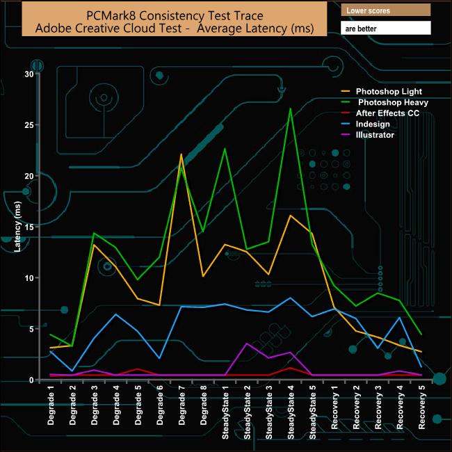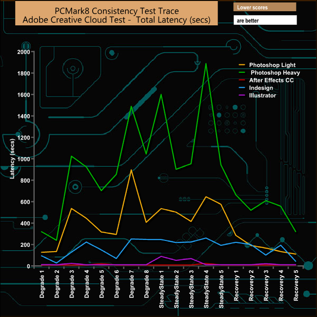 In the Adobe suite of tests, the TR200 really suffers, particularly during the demanding Photoshop Heavy and Light test runs. It does however recover quite well from the ordeal.