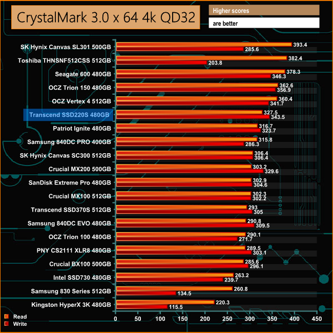 While the 480GB SSD220S performs well at deeper queue depths its 4K write performance at shallow queue depths is also very good, especially for a drive aimed at the entry-level end of the market.