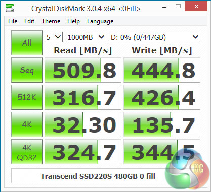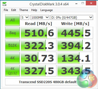 Crystalmark is a useful benchmark to measure theoretical performance levels of hard drives and SSD’s. We are using V3.0.4.