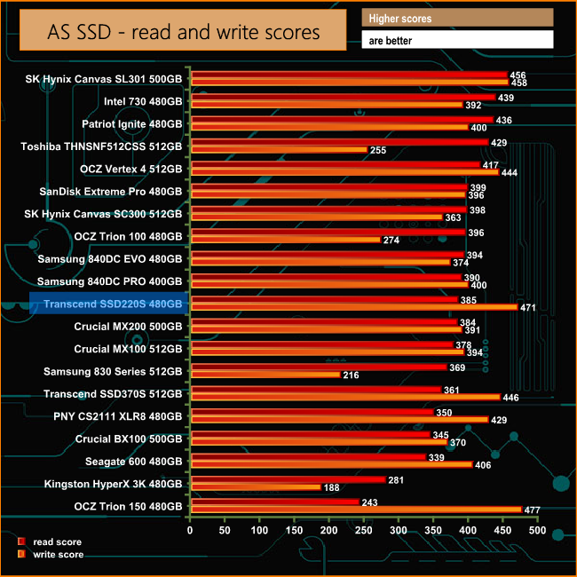 Testing the drive with the AS SSD benchmark produced strong 4K write performance at both shallow and deeper queue depths. It even manages to outperform Transcend's flagship SSD370 in this test.