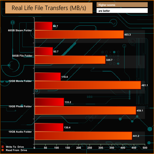 The 60GB Steam Folder file transfer for example, started at a very reasonable 325MB/s but almost immediately the performance started to decay so by the time 35GB had been written, the MB/s rate had fallen to 86MB/s.