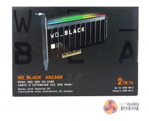 The AN1500 comes in a stout box with an image of the drive on the front. Under the image to the left are the name and the fact it is an NVMe SSD add-in-card and it works in a desktop PC. This information is repeated in French. To the right is the drives capacity and the sequential speed rating, again this information is repeated in French.