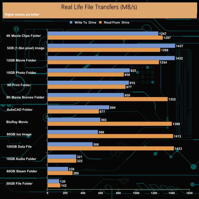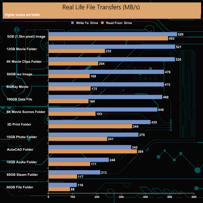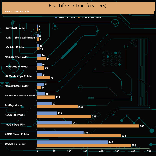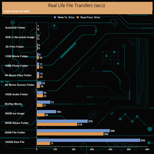 Taking the SATA drive out of the loop shows just how fast the WD Black D50 Game can perform, although the 60GB Steam, 50GB File and 10GB Audio folder transfers are still slow compared to the large file transfers.