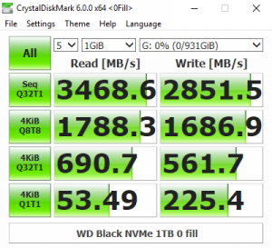 CrystalDiskMark is a useful benchmark to measure theoretical performance levels of hard drives and SSDs. We are using V3.0.3., but will be switching to v6.0 shortly so we have added the two CrystalDiskMark 6 result screenshots.