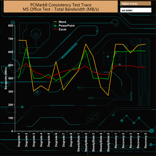 The drive doesn't handle any of the Microsoft office tests particularly well and the recovery is erratic too.