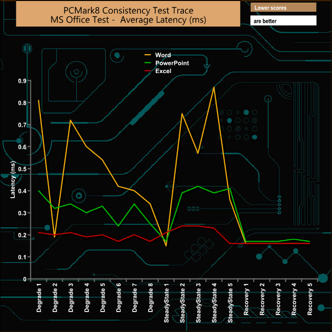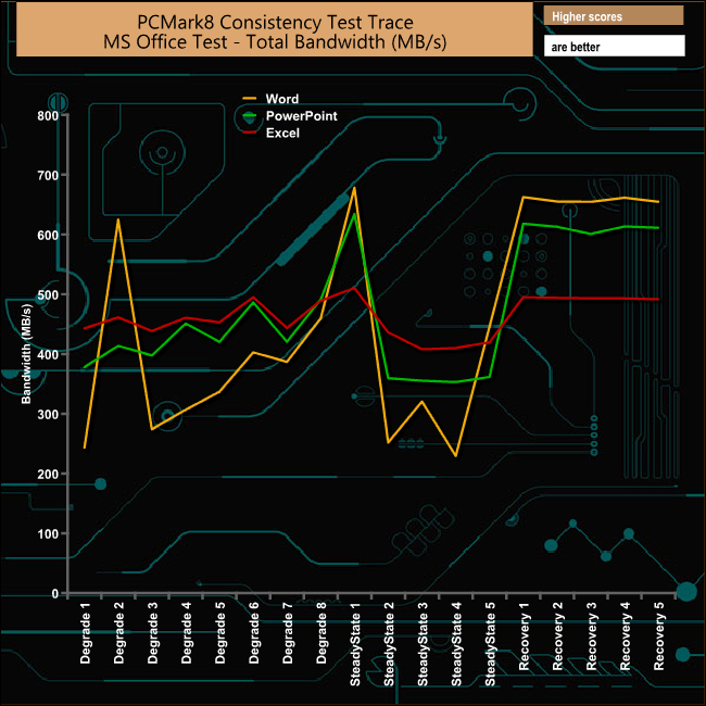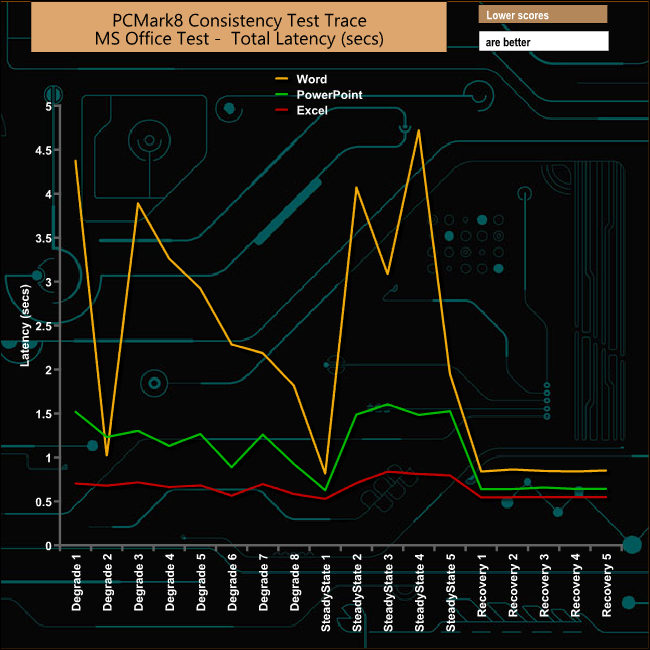 Although the drive doesn’t handle any of the Microsoft office tests particularly well it does recover from the ordeal pretty well.