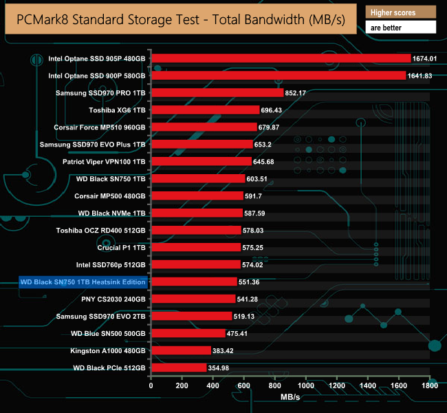 We also recorded the total bandwidth result for the whole run of the PCMark8 Standard Storage test.