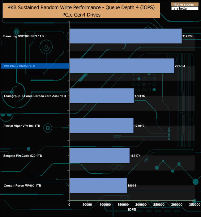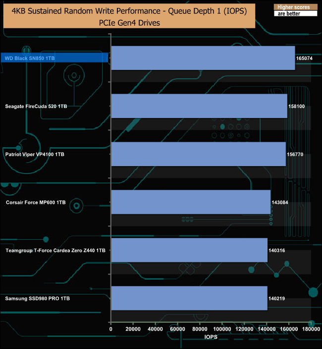 4K Random Write v QD Performance Comparison.