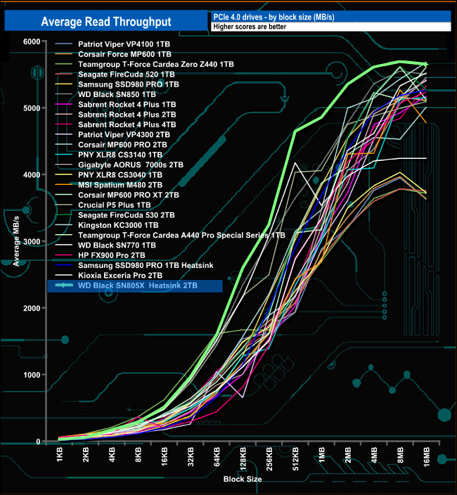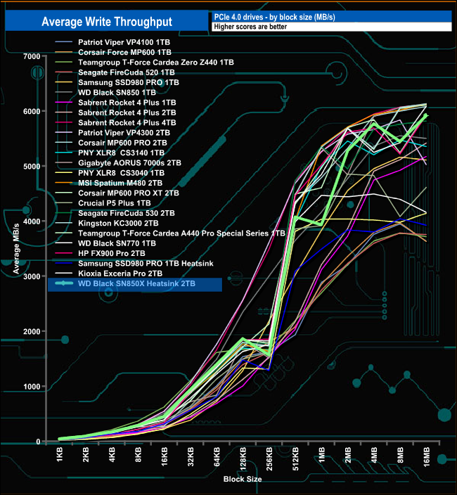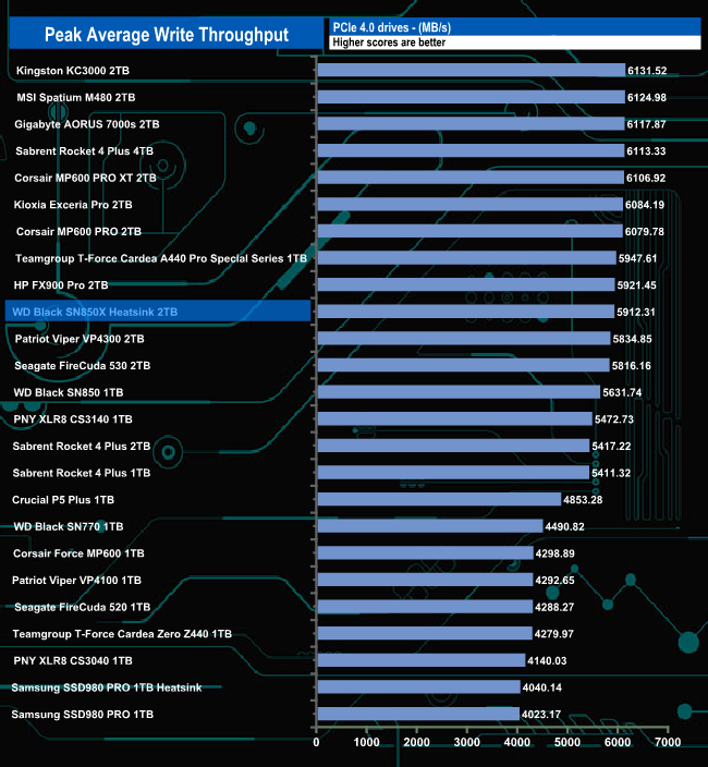 The peak write result we saw of 5,912MB/s is only good enough to see it placed in mid-table in our results chart, but it is some 280.57MB/s faster than the WD Black SN850.