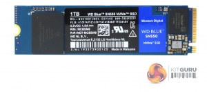 WD’s Blue SN550 is a single-sided PCB design, so the rear of the drive is empty and to be honest so is much of the front. Being a DRAM-less design, the only two major chips on the board are the in-house WD controller (SanDisk 20-82-01008-A1) which sits on the PCB just behind the interface contacts and a single 1TB NAND package of SanDisk 96-layer 3D TLC NAND which is housed at the other end of the PCB.