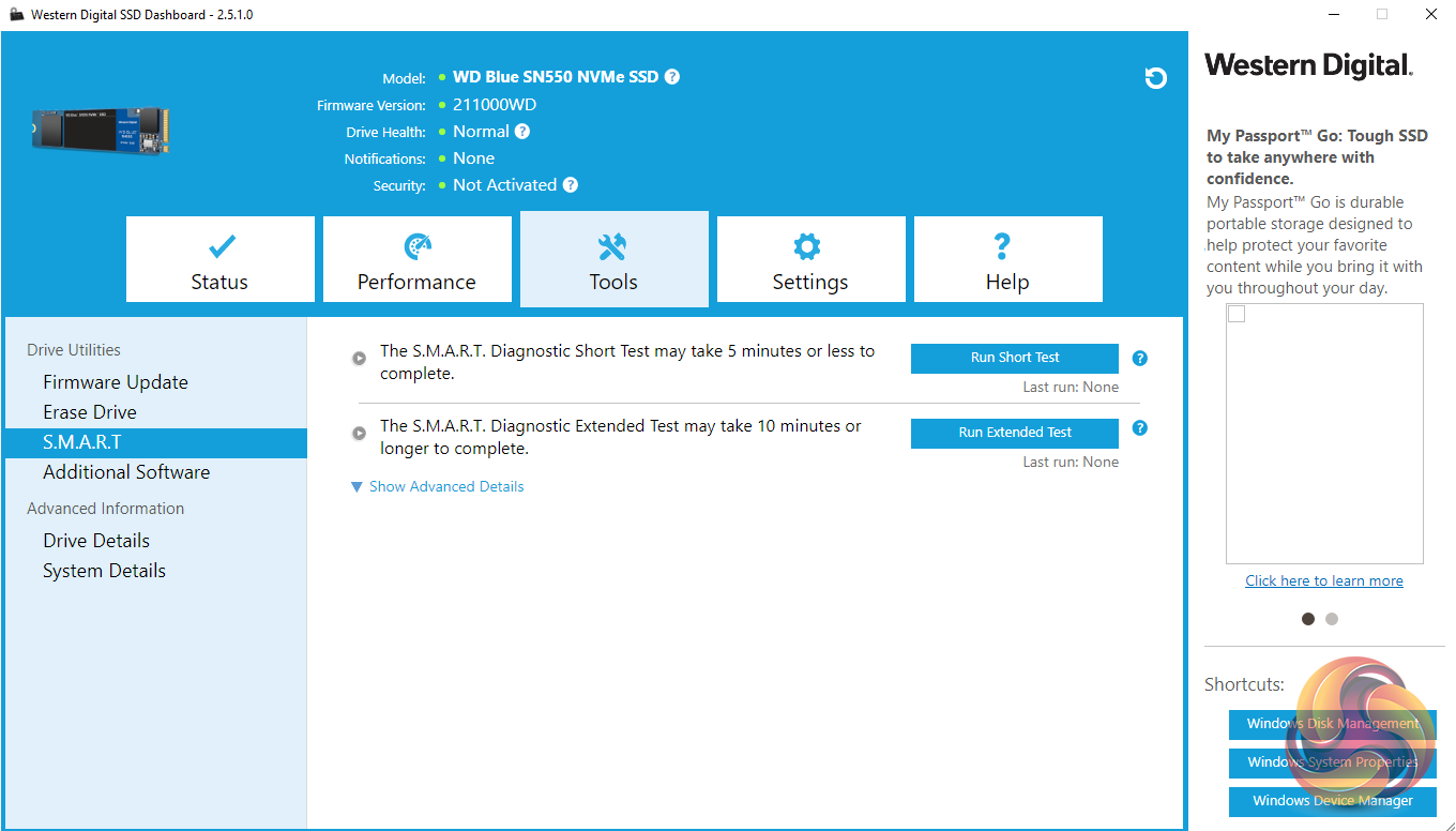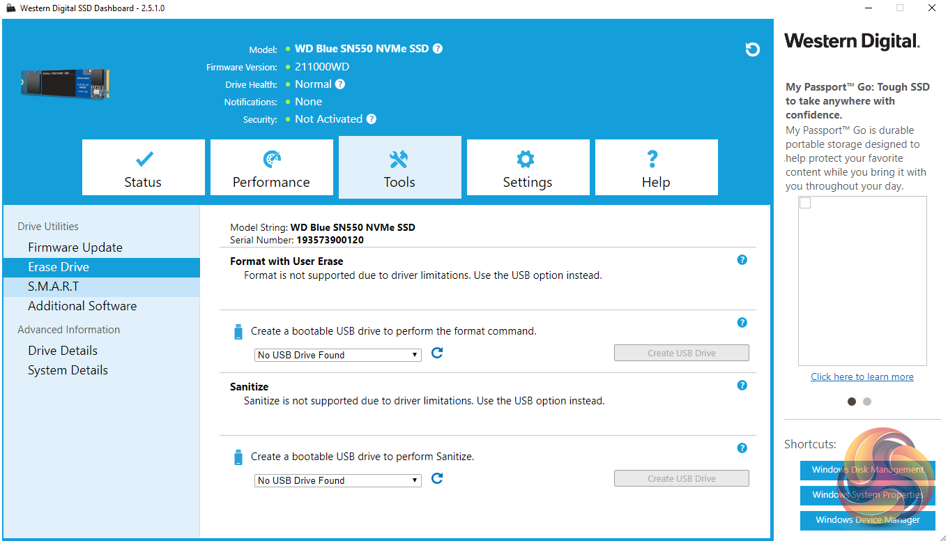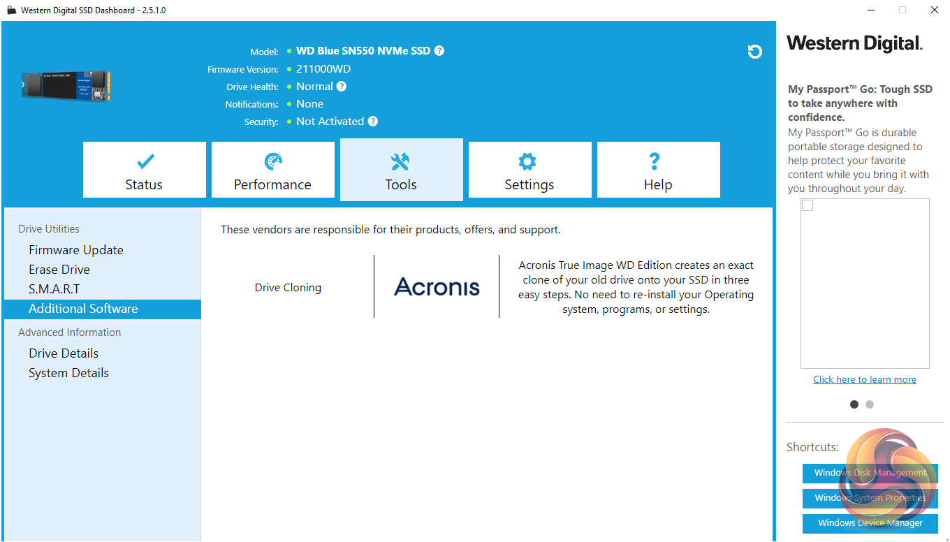 WD's SSD management utility goes under the name of SSD Dashboard. With it, you can monitor drive status, performance, update firmware and monitor temperatures. There’s no cloning tool integrated into the utility but you can download Acronis True Image WD Edition from the WD website.