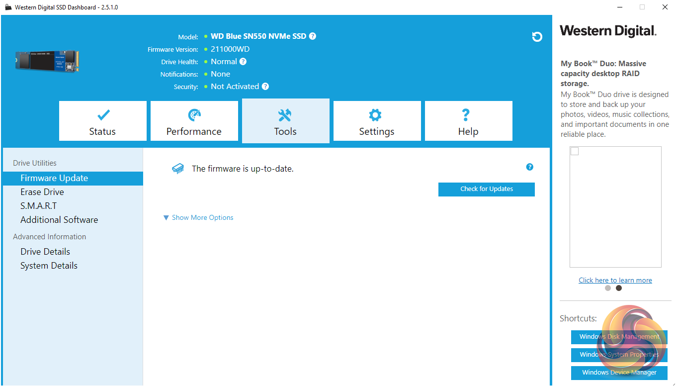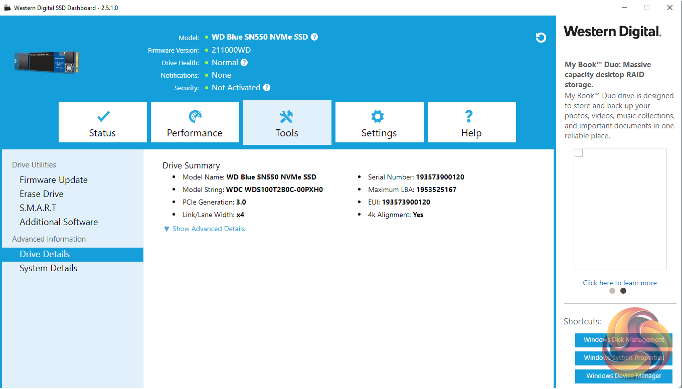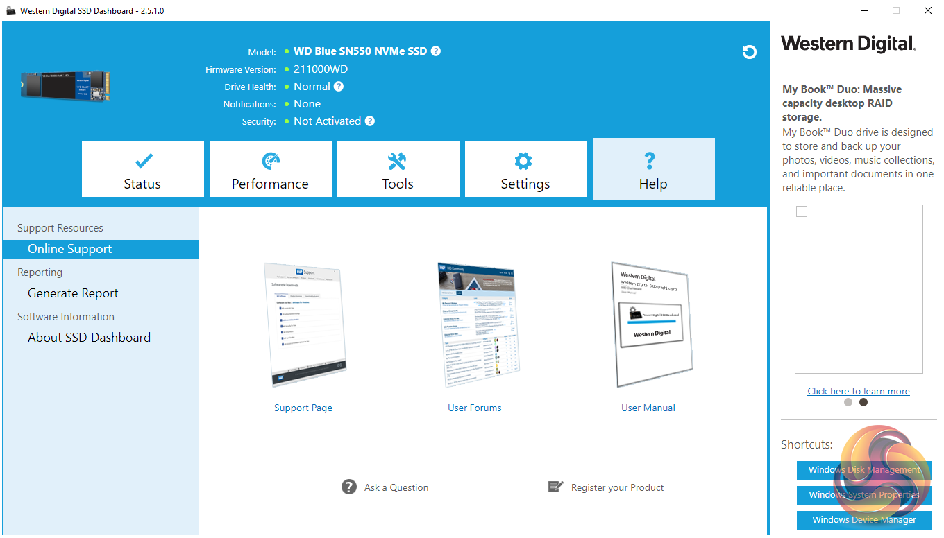 WD's SSD management utility goes under the name of SSD Dashboard. With it, you can monitor drive status, performance, update firmware and monitor temperatures. There’s no cloning tool integrated into the utility but you can download Acronis True Image WD Edition from the WD website.
