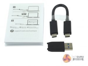 Bundled in with the drive is a USB-C cable together with a useful USB Type-C to Type-A adapter and a quick install guide.