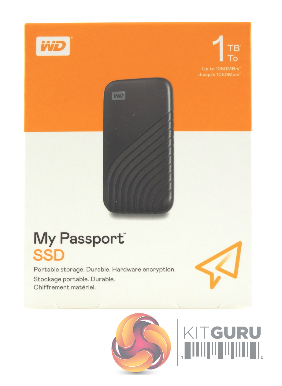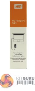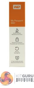 The WD My Passport SSD comes in a smart orange and white finished box with an image on the drive on the front together with the drive's capacity and performance.