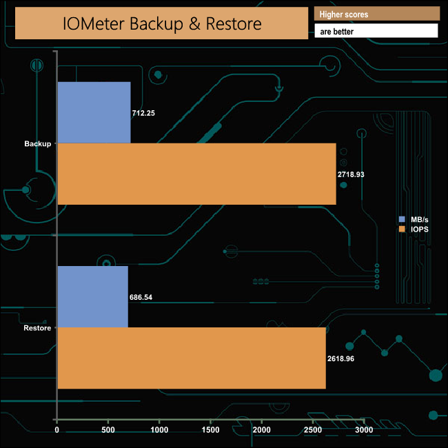 The drive had no problems dealing with our backup/restore test producing a backup bandwidth of 712.25MB/s and 685.54MB/s for the restore bandwidth.