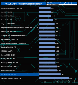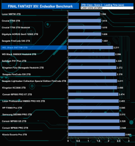 WD's Black SN770M does well enough in the Final Fantasy XIV Endwalker Official Benchmark. It doesn't top any of the scene load times, indeed for scene 1 it's very nearly the slowest drive, but it still manages to end up in the top 10 drives we tested with this benchmark.