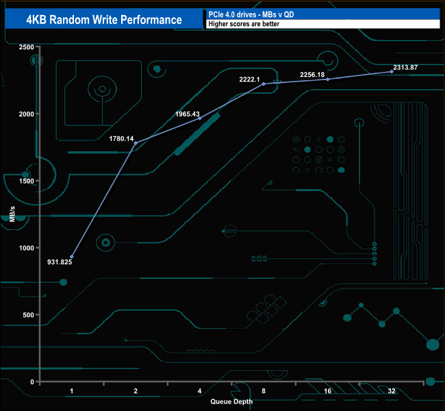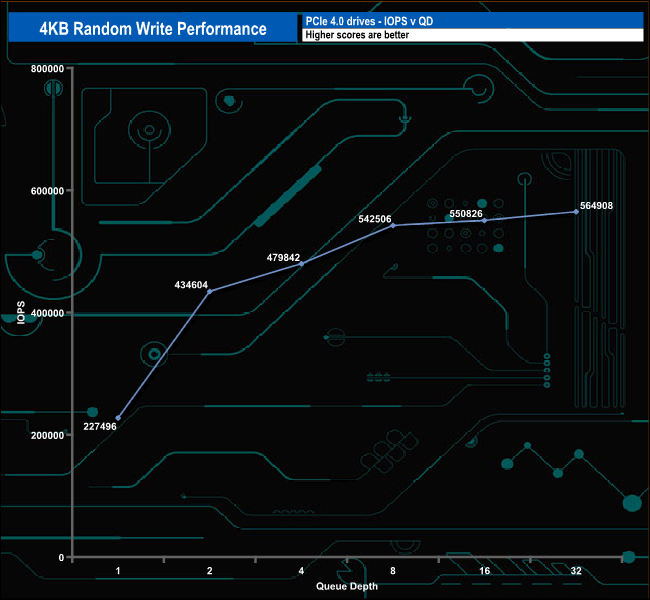 Even though our test result is a long way off the official figure it is still good enough to put the drive in the top 10 of Gen 4 drives we've tested to date and at QD32, it's the fastest drive we've seen to date.